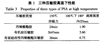 三種壓敏膠的耐溫性能比較