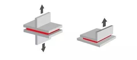 兩個被粘物使用熱熔膠粘合后,在存放和使用的過程中會受到以下兩種類型的外力作用而被破壞: