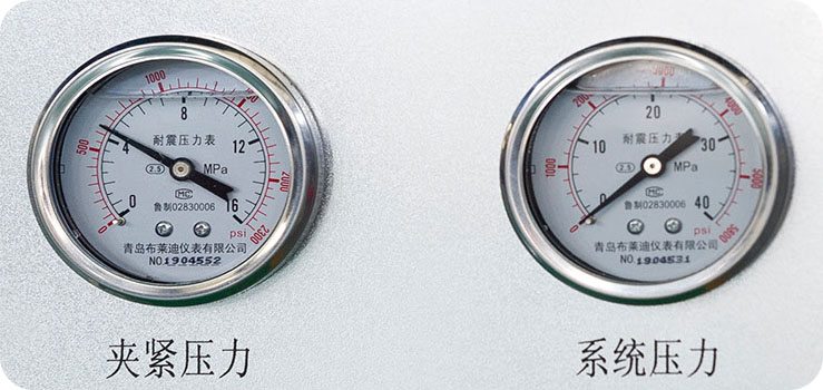 實(shí)時(shí)顯示伺服油源的壓差啟動(dòng)壓力、系統(tǒng)壓力、夾緊壓力,為設(shè)備的正常運(yùn)行保駕護(hù)航。